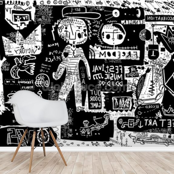 Black And White Graffiti Wallpaper - Mural Wall